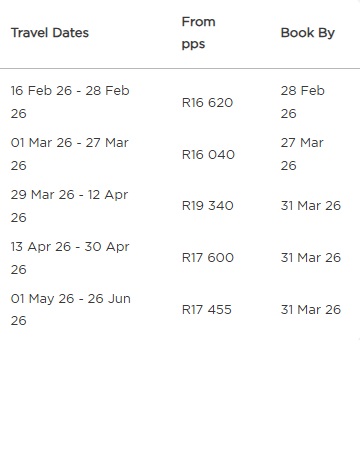 From R16 040 per person sharing This Package Includes: Return flights to Mauritius. Return resort transfers. 5 nights accommodation in a Comfort Room. Breakfast & dinner daily. Land & Water sports as featured by the resort. *T&Cs apply Written by Chantelle Pearson